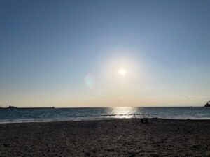 砂浜によせる波の静けさが気持ち良い。途中、ご近所さんでみかんを分けていただいた。