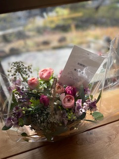 ご近所にオープンするブックカフェにお祝いのお花を持ってお伺いする